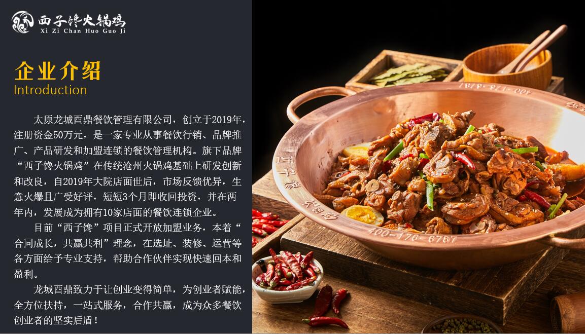 太原龍城酉鼎餐飲管理有限公司,創(chuàng)立于2019年, 注冊資金50萬元,是一家專業(yè)從事餐飲行銷、品牌推廣、產(chǎn)品研發(fā)和加盟連鎖的餐飲管理機構。旗下品牌“西子饞火鍋雞”在傳統(tǒng)滄州火鍋雞基礎上研發(fā)創(chuàng)新和改良,自2019年大院店面世后,市場反饋優(yōu)異,生意火爆且廣受好評,短短3個月即收回投資,并在兩年內(nèi),發(fā)展成為擁有10家店面的餐飲連鎖企業(yè)。