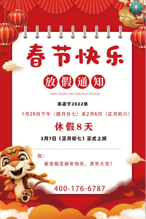 計(jì)劃于2022年1月29日下午至2月6日(正月初六)放假