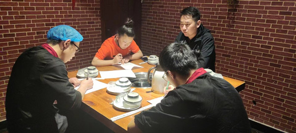 歡迎:“晉中榆次安寧街店”備戰(zhàn)開(kāi)店,馬總團(tuán)隊(duì)來(lái)總部培訓(xùn)學(xué)習(xí)。針對(duì)不同崗位帶訓(xùn),每日店長(zhǎng)廚師長(zhǎng)帶著復(fù)盤(pán),培訓(xùn)人員進(jìn)行門(mén)店實(shí)操。裝修的同時(shí),培訓(xùn)實(shí)操同步進(jìn)行。